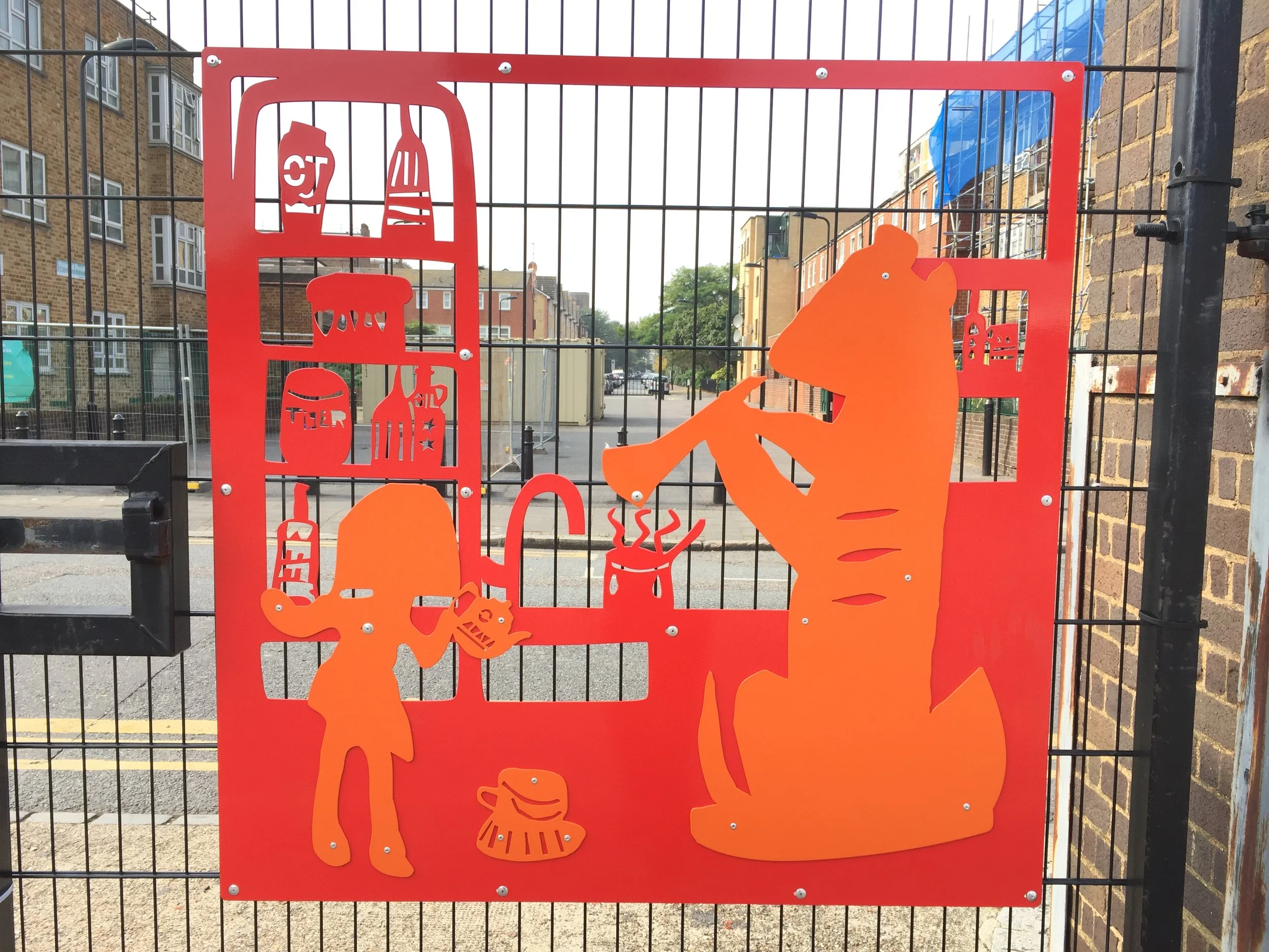 A nice two layer gate design created with pupils from Daubeney Primary in Hackney. The panels give the school a great presence on the street and welcome visitors into the school